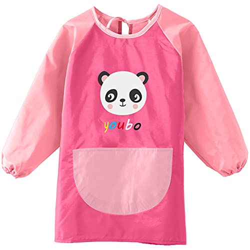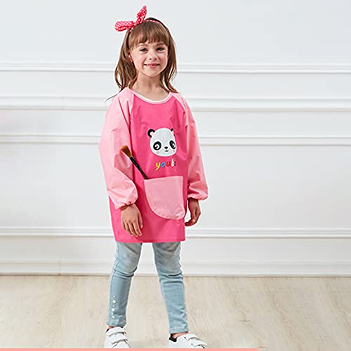 Camice da pittura per bambini, grembiule da pittura, impermeabile, per bambini da 7 a 12 anni, a maniche lunghe, con tasche, per attività di laboratorio, cucina, attività scolastiche, Rosa Panda, M