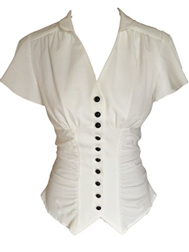 Camicetta Bianco Avorio Gotico Vittoriano, Steampunk A Balze