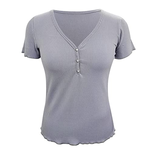 Crop Tops - Camicetta estiva da donna, a maniche corte, con scollo a V, tinta unita, elegante, in viscosa, grigio., XL