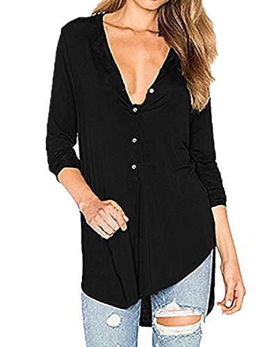 Auxo Camicetta V Scollo Camicie Manica Lunga T Shirt Cotone Blouse Casuale OL Eleganti Nero IT 38/Asian M