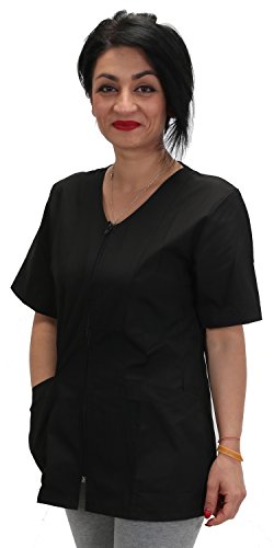 Camici da Lavoro Donna con Zip,Casacca,a Scelta tra 4 Colori, Estetista,parrucchiera, MAESTRA Asilo,Alimentari (m, Nero)