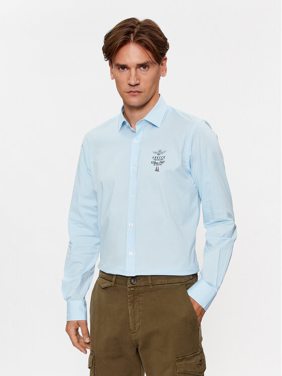 Aeronautica Militare Camicia 232CA1236CT3212 Blu Slim Fit