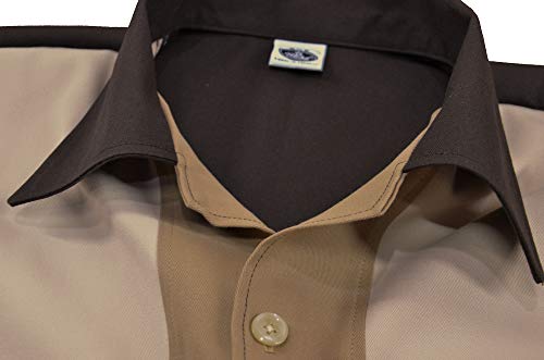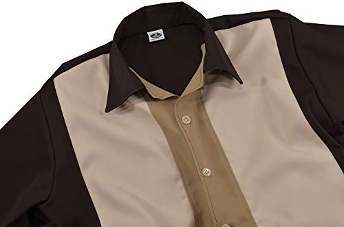 Camicia da bowling da uomo Camp Cabin Cabana Work Camicia Rockabilly Two Tone Gabardine Lounge Fifties Vintage Retro Panel D800, marrone scuro, beige, marrone chiaro, XL