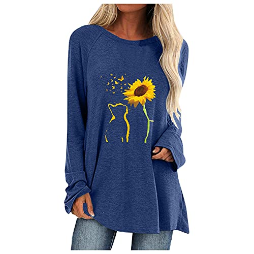 Camicia Casuale Camicetta Maglietta Manica Lunga Eleganti Tunica T-Shirt Loose Fit Maglia Tops Donna T-Shirt Top Moda Donna Plus Size O-Collo Stampa Camicetta Allentata (M,9marina Militare)