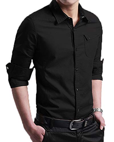 Camicia Uomo Classica Slim Fit Manica Lunga Stiratura Facile Tinta Unita di Grandi Dimensioni Classica Camicetta Tops Nero 3XL