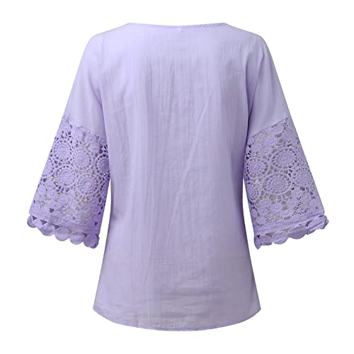 Camicia Coreana Cameriera Maglietta da donna con scollo a V con maniche a tre quarti Maglietta ampia Maglietta con ritaglio Maglietta a tunica Maglietta elegante Camice Primavera (Purple, XL)