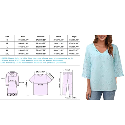 Stile Di Design: Si Prega Di Notare Che Ci Sono Lievi Differenze Di Colore E Dimensioni A Causa Di Alcuni Fattori Irresistibili Donne Ritaglio Scollo A V Manica A Tre Quarti Top Camicia Ampia Ritaglio T Shirt Tunica Top Camicia Elegante Materiale Confortevole, Adatto A Una Varietà Di Occasioni, Elegante E Alla Moda Sei Più Attraente