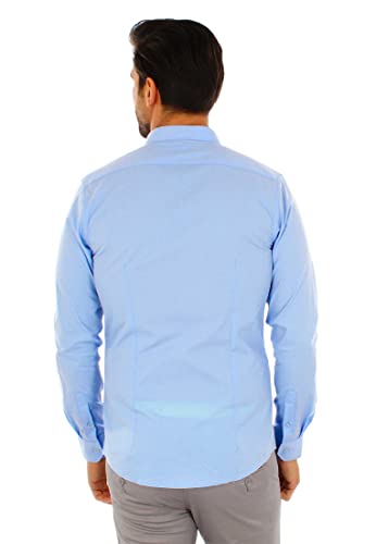 Camicia Uomo Slim Fit Coreana Elegante in Cotone Bianca Blu Nera Celeste (M, Celeste)