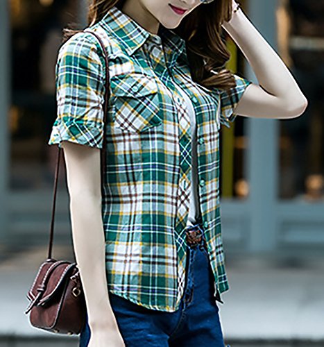 Camicia Donna Elegante Estivo Manica Corta Bavero Colori Misti Magliette Cucitura Shirt A Quadri Single Breasted Slim Fit Classiche Moda Camicetta T-Shirt Abbigliamento Ragazza