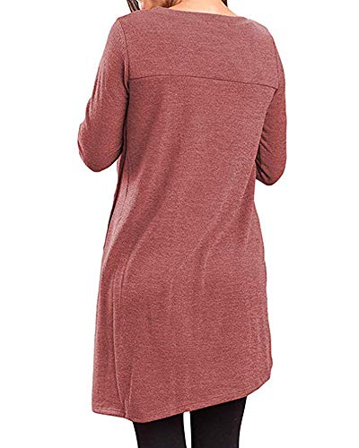 Camicia da Donna a Manica Lunga Tunica Top Casuale Camicetta Bottoni Laterali Maglietta Lunga con Scollo Rotondo Rosso Scuro X-Large