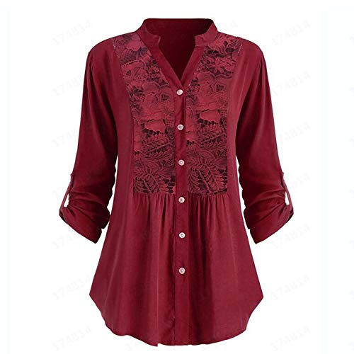 HOSD Camicia Top da Donna a Maniche Lunghe con Scollo a V Taglie Forti in Pizzo