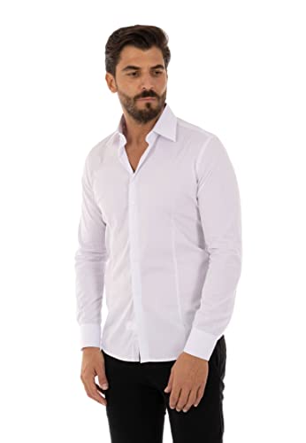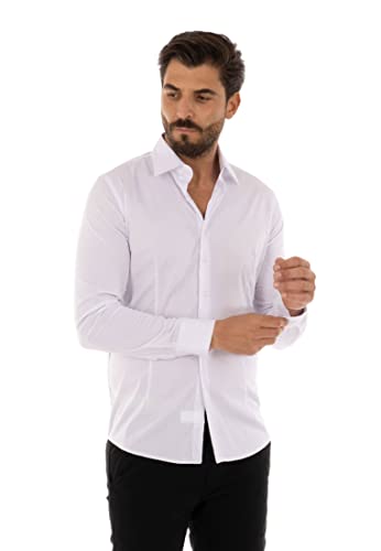 Camicia Uomo Elegante Slim Fit Avvitata in Cotone Collo Classico (Bianco, 3XL)
