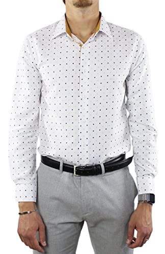 Camicia Uomo Elegante Slim Fit in Cotone Bianca Celeste Blu Classica Sartoriale a Miro Fantasia Rombi (Bianco, L)