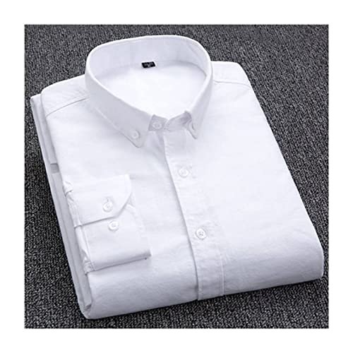 Camicia Elegante Da Uomo A Maniche Lunghe - Camicie Oxford Camicie Eleganti Casual In Cotone, Camicia Sociale Uomo Vestibilità Regolare Con Tasca Sul Petto Solido Maschile Taglie S - 4Xl,Bianco,