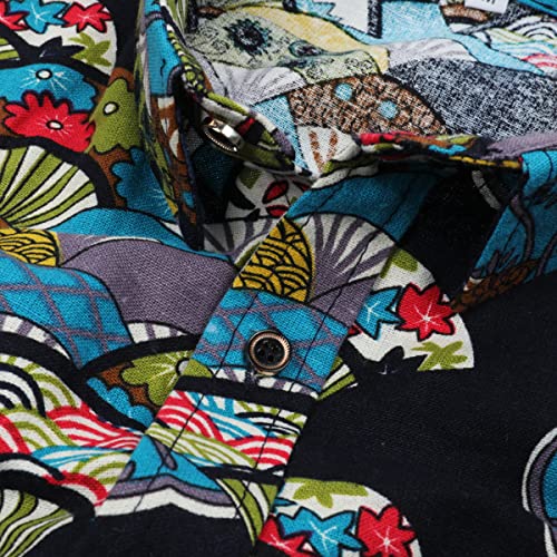 Camicia Elegante da Uomo Shirt Elegante a Maniche Lunghe in Lino Stampato Camicia Casual Fantasia Floreale Tops Pattern Unico cs1 S