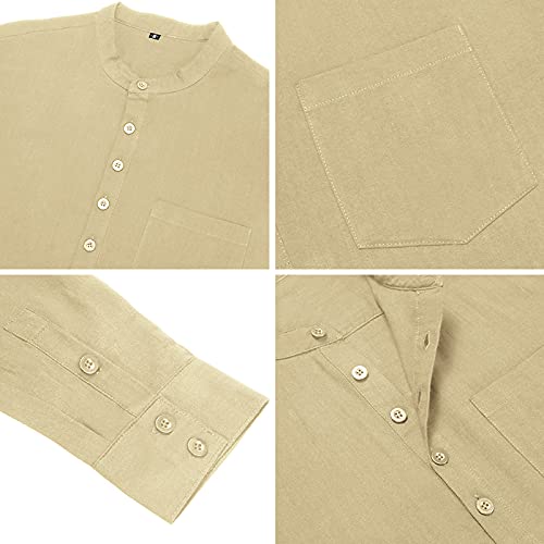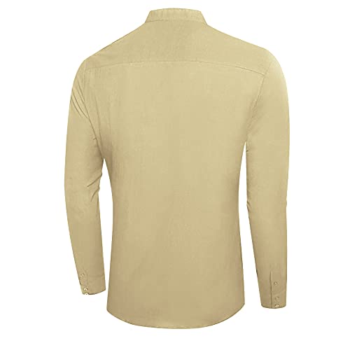 Camicie casual Litthing: questa camicia in cotone è una classica camicia senza colletto in tinta unita con tasche e maniche lunghe da uomo. Il look elegante combinato con tessuti confortevoli lo rende un capo d'abbigliamento indispensabile per tutti gli uomini esigenti con un guardaroba elegante.
