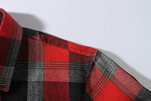 SSLR Camicia da uomo in flanella a maniche lunghe con bottoni casual per uomo, rosso e bianco., XL