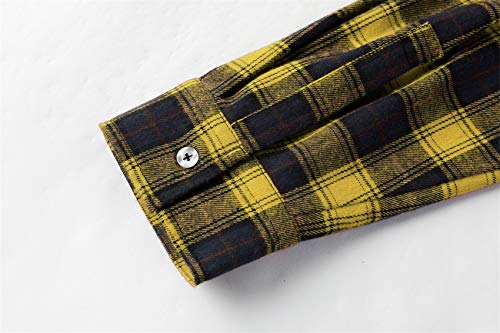 Camicia in flanella da uomo, a quadri, a maniche lunghe, 100% cotone, per il tempo libero, per il lavoro, per il lavoro giallo-blu XL