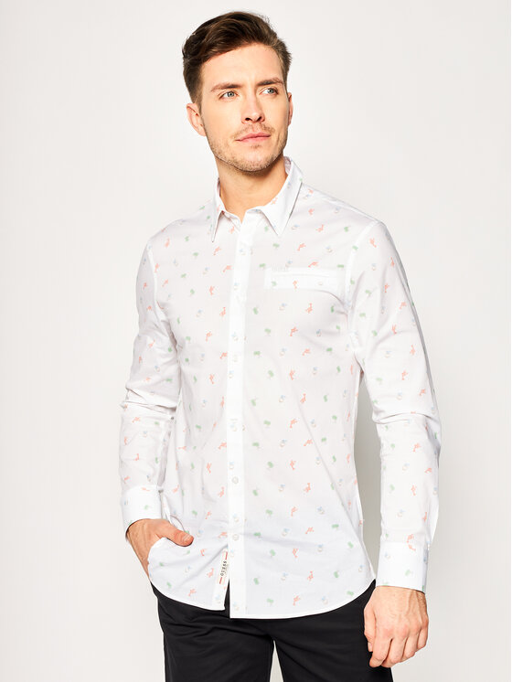 Guess Camicia Ls Sunset Shirt M02H20 W8BX0 Bianco Slim Fit