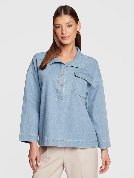 Moss Copenhagen camicia di jeans Caralisa 16930 Celeste Regular Fit