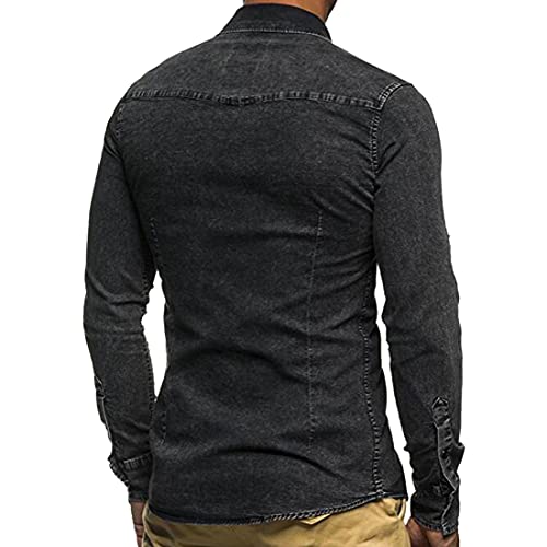 Camicia da Uomo in Jeans di Jeans Spessa con Colletto Regolare e Tasche Eleganti Camicia Slim Fit Manica Lunga Casual abbottonata per la Moda a Maniche Lunghe Giacca di Jeans Top Elasticizzato...