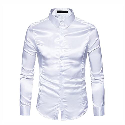 Camicia Da Uomo In Raso Liscio Camicia Da Smoking Da Uomo In Puro Colore Camicia Da Uomo Formale Camicia A Maniche Lunghe Colletto Con Bottoni Camicia Casual Da Lavoro Camicia Da Uomo Casual Slim Fit