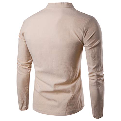 Camicia Manica Lunga Uomo Slim Fit Camicie Collo Coreana Casual Camicie Maniche Lunghe Button Down Business Shirt Moda Eleganti Fashion Shirts Formale Top Classiche Camicetta Beige M