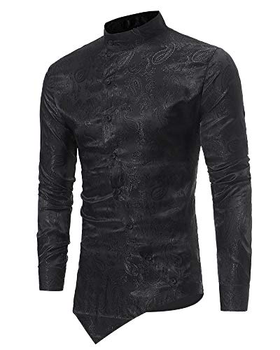 Uomo Camicia A Manica Lunga Colore Solido Irregular Silm Fit Shirt Blouse Stampa Tops T-Shirt Nero L