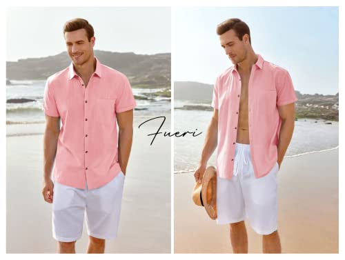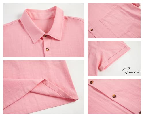 Camicia da uomo a maniche corte, estiva, in lino, in cotone, con colletto rovesciato, per il tempo libero, Colore: rosa., L