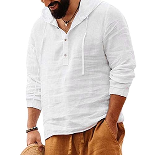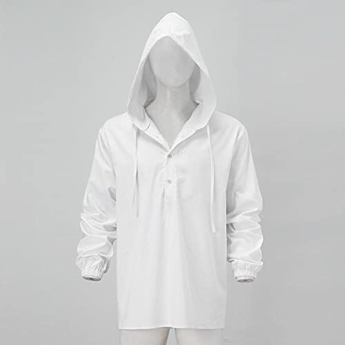Camicia da uomo a maniche lunghe, con cappuccio, alla moda, con bottoni automatici, bianco, XXL
