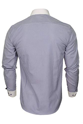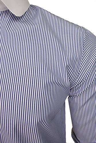 Xact Camicia a maniche lunghe da uomo Club/Penny Collar, Collo Bianco - Strisce Blu, XL