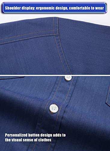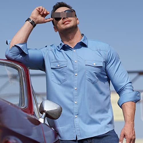 Camicia a maniche lunghe in denim da uomo - Camicia da uomo con bottoni automatici a doppia tasca retrò da uomo, camicia a maniche lunghe in denim elasticizzato camicia multitasche moda casual