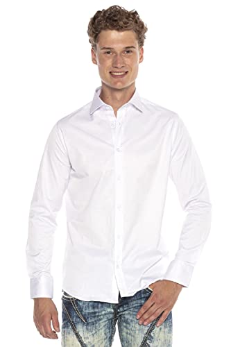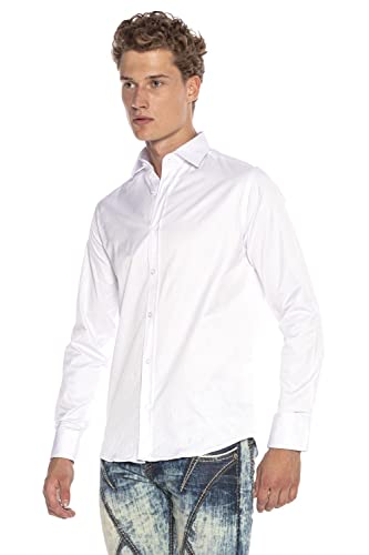 Cipo & Baxx Camicia da uomo a maniche lunghe, design classico, elegante, per il tempo libero, Ch163-bianco, XL