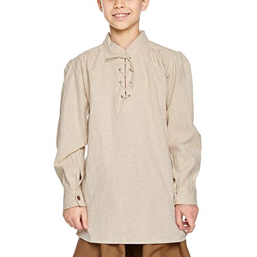 Camicia medievale da bambino in cotone - Indumento da garzone, cavaliere o re - Con lacci dalla zona del collo fino al petto - Bianco - 9/11 Jahre