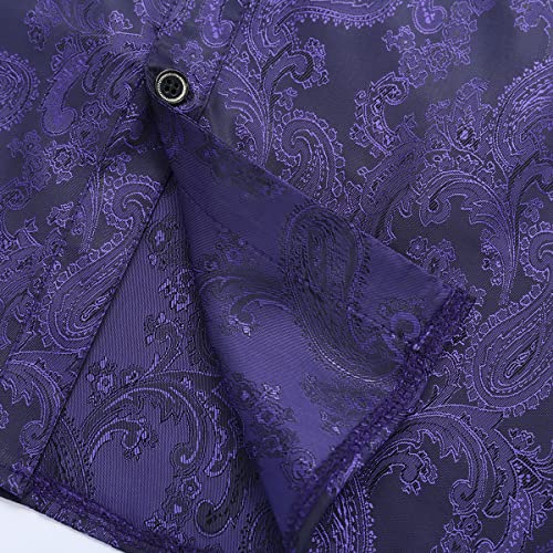 Camicia da Uomo con Motivo Cachemire in Seta Jacquard per Abito da Uomo a Maniche Lunghe con Bottoni e Colletto Viola S