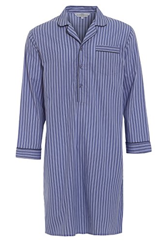 Camicia da notte da uomo, 100% cotone, con bottoni, tradizionale, con colletto, lunghezza al ginocchio fantasia a quadri
