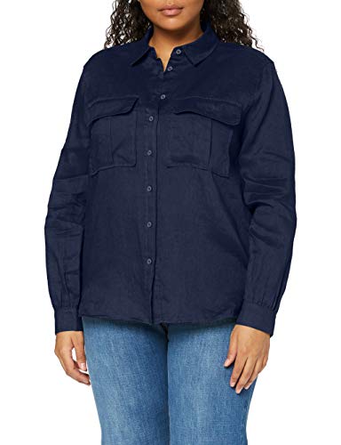 Find. Camicia Oversize di Lino a Manica Lunga Donna, Blu (navy), 42, Label: S