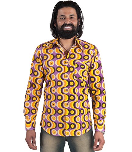Camicia da party anni Settanta a onde, colore: viola Violett XL
