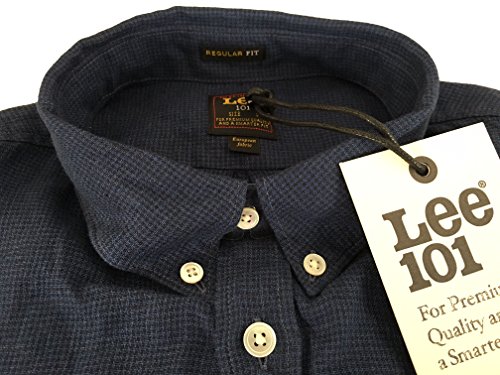 Lee 101 Camicia Uomo Piede de Poule Denim/Blu MOD 101 Button Down 100% Lino Regular Fit (M)