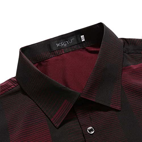 Camicia da uomo per la primavera ed l'estate, alla moda, casual, da spiaggia, a maniche corte, in flanella, Colore: rosso, XXL