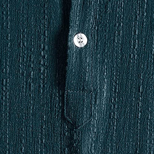 Camicia Pullover Bottoni Camicia Uomo Casual Solid Manica Corta Colletto del Basamento (L,Blu-1)