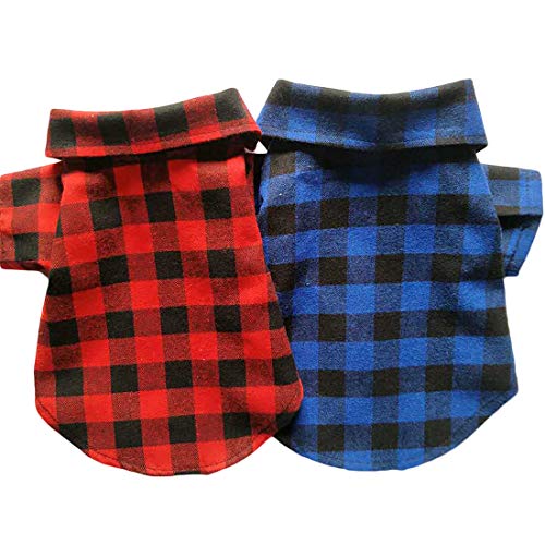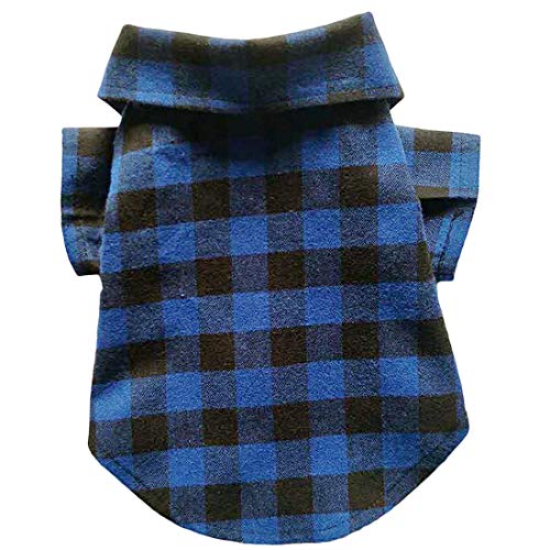 Camicia a quadri per cani di piccola taglia media e cuccioli, in cotone, per la primavera e l'autunno, in jersey, per cani, taglia M, blu