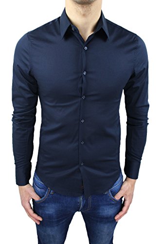 Camicia Uomo Sartoriale Blu Scuro Slim Fit Casual Elegante in Cotone (L)