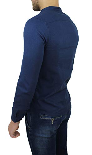 Camicia Uomo Sartoriale in Lino Blu Scuro Casual Estiva Slim Fit (l)