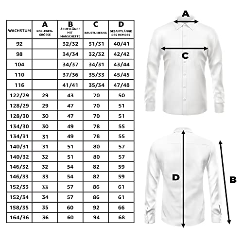 Camicia standard per ragazzi, cotone, prima comunione, primo giorno di scuola, di alta qualità, taglio classico, elegante e con bottoni bianchi, lunga durata, bianco, 14 anni