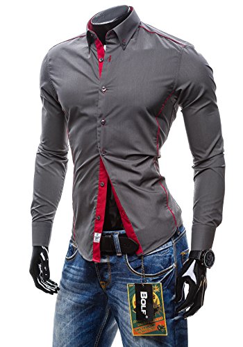 BOLF Camicica - A Manica Lunga - Button-Down - A Bottoni - Elegante - Slim Fit - da Uomo 2B2