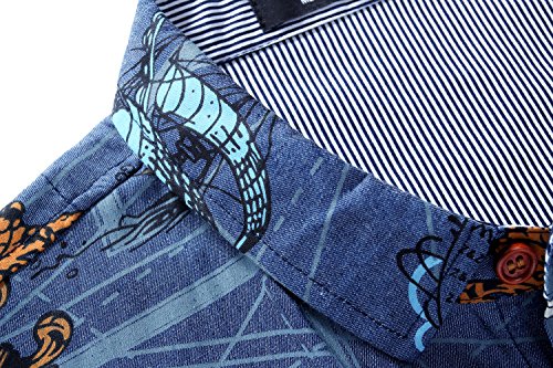SSLR Uomo Camicie in Denim Manica Corta Casual Button Down Motivo Stampa
