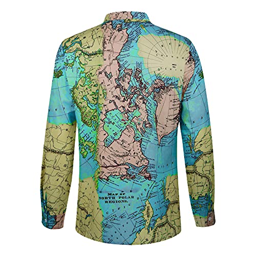 Camicie da Uomo Manica Lunga Casual Camicie Ragazzo T-Shirt Camicia Uomini Eleganti con Stampa della Mappa Taglie Forti Personalizzata Fantasia Uomo Maglietta Maglietta Slim-Fit Spiaggia