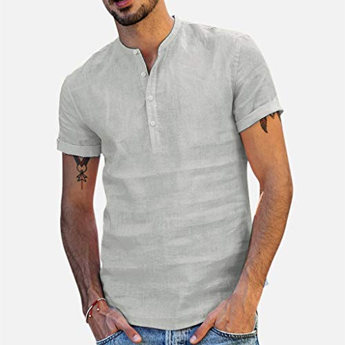 Camicie Uomo Slim Fit Maniche Corte Coreana Bianche Quadri Camicie Uomo Lino Eleganti Classiche da Notte Biancheria Fantasia Colorate con Bottoni Maglietta Estive Spiaggia T-Shirt