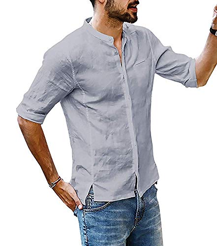 Camicie Uomo Slim Fit Maniche Corte Coreana Bianche Quadri Camicie Uomo Lino Eleganti Classiche da Notte Biancheria Fantasia Colorate Jeans con Bottoni Maglietta Estive Spiaggia T-Shirt